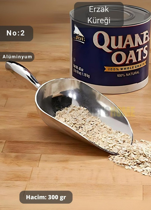 Jet' s Home Erzak Küreği Alüminyum Bakliyat Küreği Un Küreği Kuruyemiş Küreği Hacim 300 gr No:2 21 cm