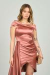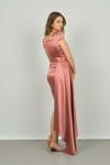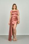 Detay: Dönen yakalı, mini, yan kısmı kuyruklu abiye elbise;