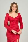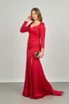 Detay: Kruvaze, uzun kollu, yırtmaçlı, astarlı, uzun abiye elbise;