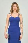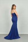 Detay: İp askılı, derin yırtmaçlı, kuyruk detaylı, astarlı abiye elbise;