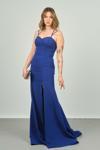 Kadın Önü ve Arkası Taş Detaylı Uzun Abiye Elbise 1821 Saks