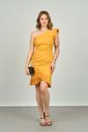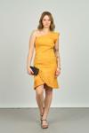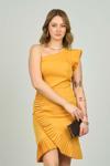 Detay: Tek omuz, piliseli, mini abiye elbise;