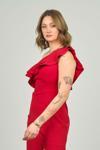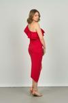 Detay: Tek omuz ve volanlı, asimetrik kesim, yırtmaçlı abiye elbise;