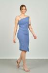 Detay: Aller etek, asimetrik kesim, astarlı abiye elbise;