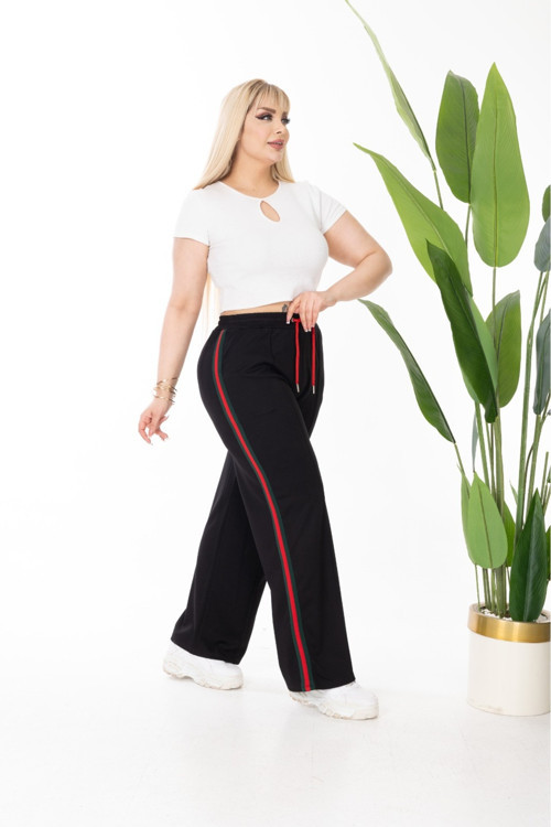 Çelik Kumaş Bol Paça Eşofman Pantolon Şerit Detaylı