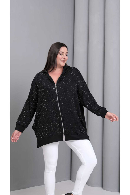 - Taş detayları ile zenginleştirilmiş ön fermuarı, hem pratiklik hem de estetik bir görünüm sunar.