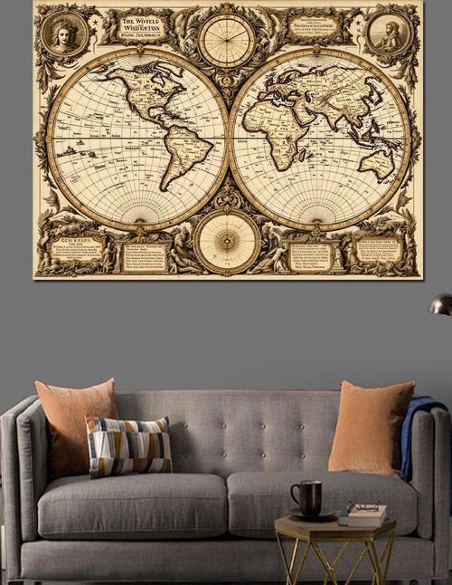 Karizmart Eski Dünya Haritası Dekoratif Kanvas - Mdf Ahşap Tablo
