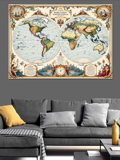 Tablomega Eski Dünya Haritası Dekoratif Kanvas - Mdf Ahşap Tablo