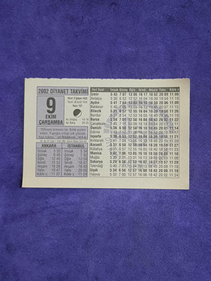 9 Ekim 2002 Takvim Yaprağı - Nostalji Koleksiyonluk Takvim Yaprağı A