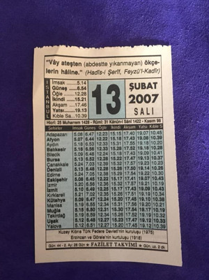 13 Şubat 2007 Takvim Yaprağı - Nostalji Koleksiyonluk Takvim Yaprağı