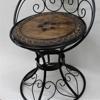 Eskitme ahşap ferforje sandalyenin genel ölçüleri 46x46x59 cm. dir.Oturma yerinin çapı 40 cm. yüksekliği 39 cm. sırt dayama yerinin yüksekliği 20 cm. dir.