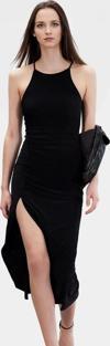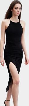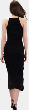Vücut hatlarınızı mükemmel bir şekilde ortaya koyan bu siyah maxi elbise, gardrobunuzun en gözde parçalarından biri olacak. Yüksek kaliteli örme kumaştan üretilen elbise, 96% polyester ve 4% elastan içeren yapısıyla inanılmaz bir esneklik ve konfor sunuyor. Halter yaka detayı ve bodycon kalıbıyla şıklığınızı vurgularken, midi boyu ve yırtmaç detayıyla hareket özgürlüğünüzü de kısıtlamıyor. Düz deseniyle her türlü kombinle uyumlu olan bu elbiseyi, hem günlük hayatta hem de özel davetlerde rahatlıkla kullanabilirsiniz.