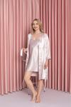 - Özel günlerinizde şıklığınızı tamamlayacak, taş baskılı Bride saten sabahlık ve geceliğin eşsiz kombini.