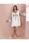 ESPUAR BAYAN 265 KAPLI KISA GECELİK SABAHLIK SATEN ECRU