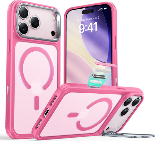 Apple iPhone 17 Pro Max Classic Hybrid Magsafe Standlı Kılıf - Kamera Kontrol Buton - Pembe