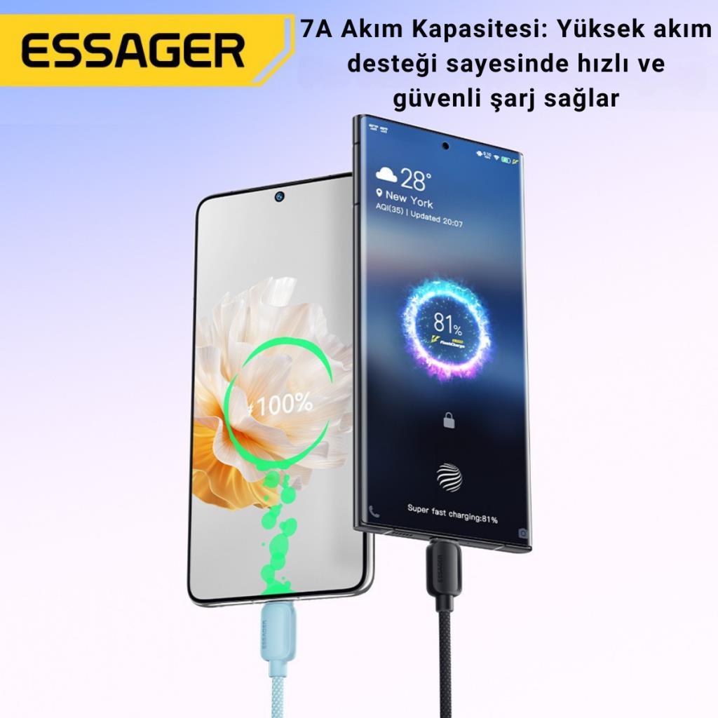 Essager 3 Metre 7A 100W E-Marker Süper Hızlı USB To Type C Şarj Data Kablosu, Akım,Isı, Güçlü Kablo