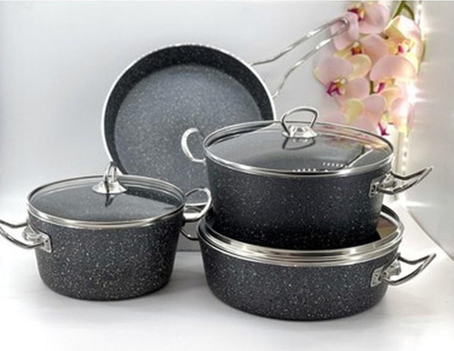 Esse markasının kaliteli işçiliği ile üretilen 7 parça granit tencere tava seti, mutfakta pratiklik ve şıklık sunar.