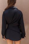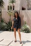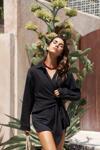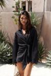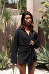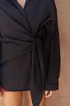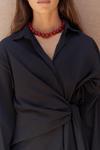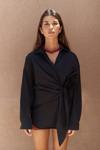 Pamuk karışımlı, uzun kollu, yakalı gömlek. Manşetleri düğmeli. Yan kısmı bağlama detaylı tasarım.