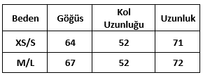 Ürün Beden Tablosu :