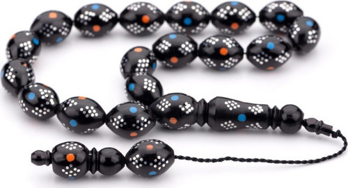 Bu özel tasarım tesbih, her biri tek tek elle işlenmiş estetik detaylara sahip üçgen model pirinç işlemeli 17'lik Kuka tesbihlerden oluşuyor. Zanaatkârların ustalığı ve özeniyle işlenen her detay, tesbihe özel bir karakter ve estetik kazandırıyor.