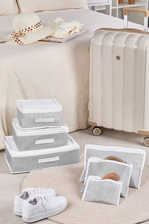 Esti 6'Lı Valiz Içi Düzenleyici Set | Pratik Bavul Organizer | Seyahat Çantası & Kutu Takımı - Çizgili