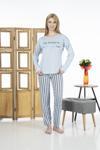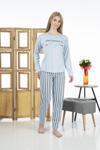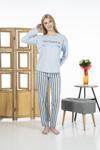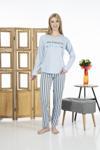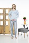 Estiva 24118 Kadın Çizgili Uzun Kollu Yazlık Viskon Pijama Takımı