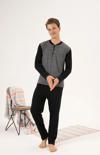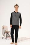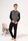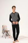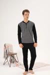 Estiva 24403 Büyük Beden Erkek Kışlık Düğmeli Yaka Jakarlı İnterlok Pijama Takımı