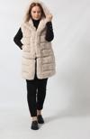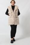 Etekten Kısalabilen Kapüşonlu Lüks Suni Kürk Yelek ürünü bel kısmında bulunan fermuar ile yeleği crop hale getirebilirsiniz.