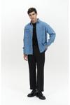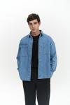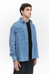 Hafif pamuklu denimden üretilen relaxed fit gömlek. Yaka detaylı, uzun kollu ve manşetleri çıtçıt düğmeli. Göğüs kısmında kapaklı yama cepler. Yıkanmış efektli. Önden çıtçıt düğmeli.