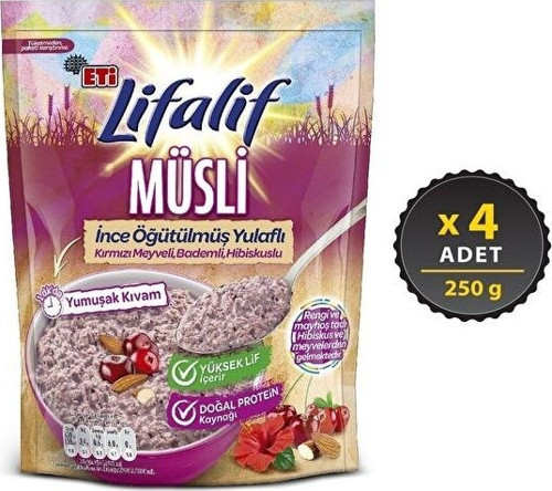 Eti Lifalif İnce Öğütülmüş Müsli Hibiskuslu 250 gr x 4 Adet