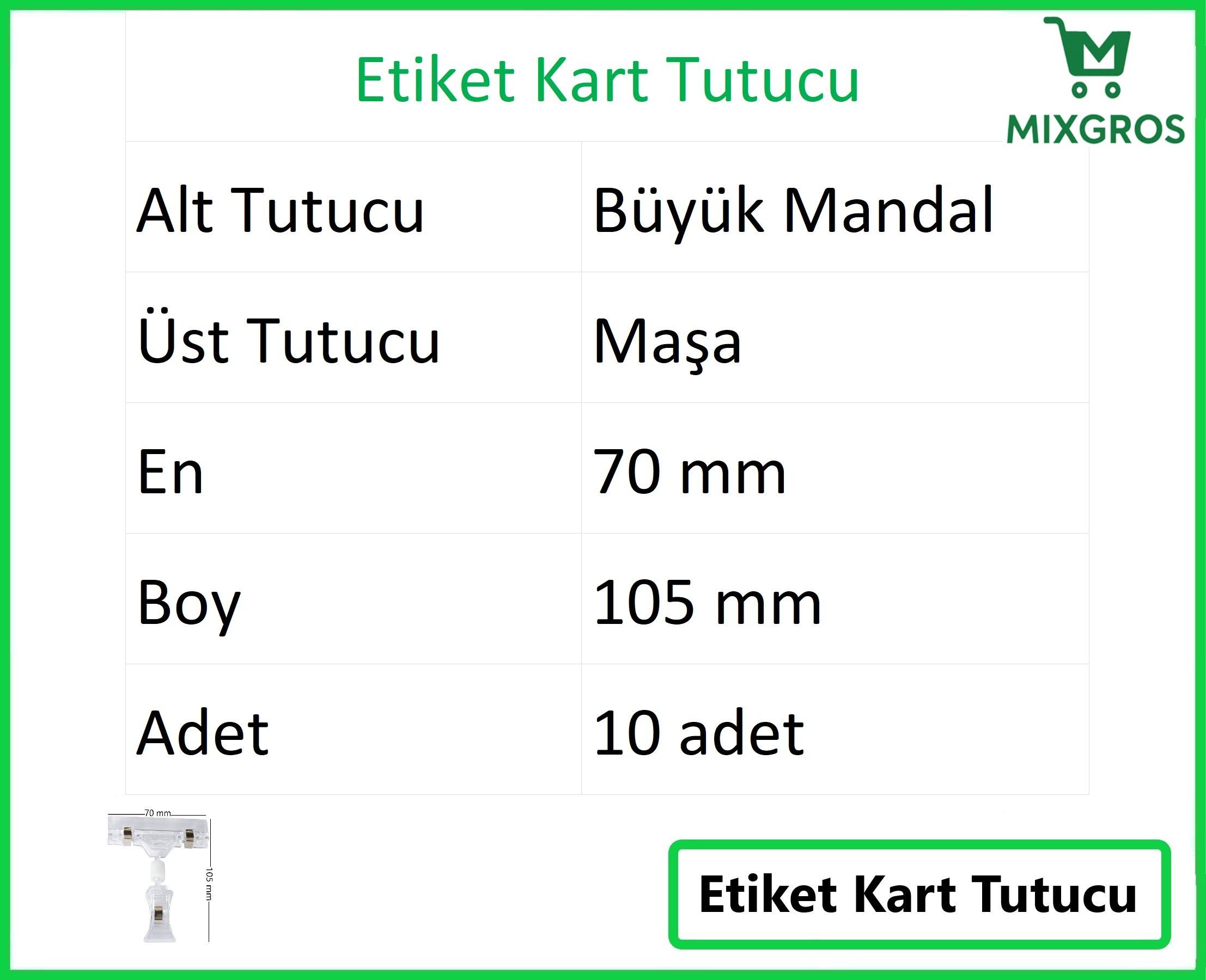 Kalınlığı 3 cm’e kadar olan her alanda tutunma sağlayan alt mandal aparatı ile fiyat etiketi, duyuru, ilan gibi bilgilerinizi sergileyebilirsiniz. Maşa etiket tutucu içerisine 10 mm’ye kadar kalınlıkta olan etiket, kâğıt, pleksi, dekota, PVC vb. gibi ürünleri sıkıştırılabilirsiniz. Bağlantı mafsalı 360° dönebilmekte olup, ürün açısını istediğiniz gibi ayarlayabilirsiniz.