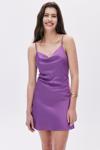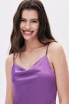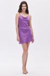 Feu De Elu Êtincelle Eflatun Degaje Yaka Askılı Kısa Saten Gecelik