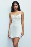 Êtincelle Ekru Degaje Yaka Askılı Kısa Saten Gecelik