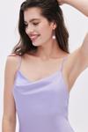 Êtincelle Lila Degaje Yaka Askılı Kısa Saten Gecelik