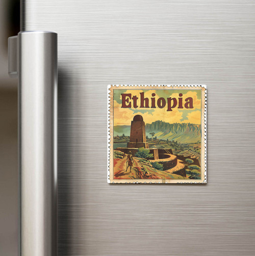 İberk Etiyopya Ethiopia - Posta Pulu Temalı Ülke - Baskılı Buzdolap Magneti Kare - 9x9 cm