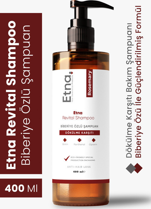 Etna Pharma Revital Biberiye Özlü Şampuan, azaltmaya ve saç sağlığını desteklemeye yardımcı olmak üzere özel olarak formüle edilmiştir. Biberiye özünün doğal gücüyle saç derisini canlandırır, saç köklerini güçlendirir ve saçların daha dolgun, sağlıklı görünmesini destekler. Düzenli kullanımda saçların daha canlı, parlak ve sağlıklı bir görünüme kavuşmasına katkı sağlar.