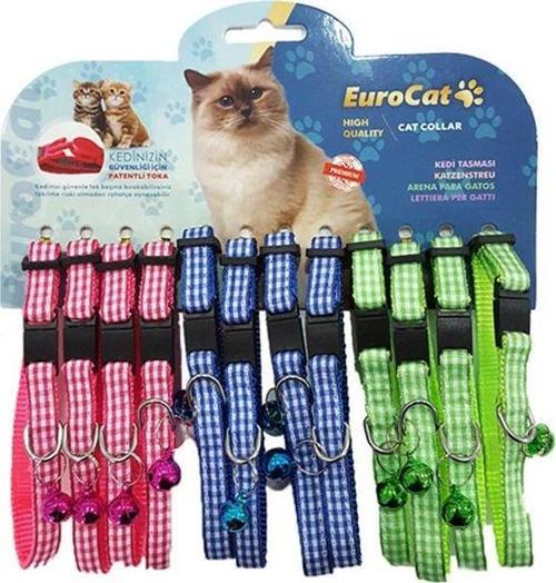 EuroCat Renkli Ekoseli Çıngıraklı Kedi Boyun Tasması 12'li