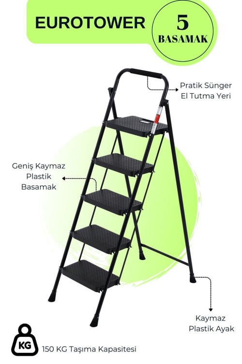 Sıradan merdivenlerin aksine geniş basamakla güvenli kullanım imkanı sunan , elektrostatik boya ile rengini almaktadır. taşıma kapasitesi 150 kg olarak belirlenmiştir.