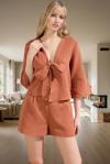Ev Giyim Takımı %100 Pamuk Müslin Regular Kalıp Rahat Şort ve Gömlek Profesyonel Görünüm