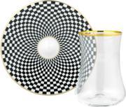 Evaliza markasının dama altın 6'lı çay seti, şeffaf cam malzemeden üretilmiştir.