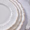 Evaliza Lace Gold 85 Parça Yemek Takımı, zarif dantel desenleri ve altın yaldız detaylarıyla sofistike bir görünüm sunar.