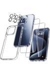 Evax (5'İ 1 Arada) İphone 15 Pro Max Uyumlu 1 Şeffaf Kılıf + 2 Ekran Koruyucu + 2 Kamera Lens Koruyucu
