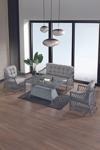 Icon Rattan Bahçe Balkon Oturma Takımı 2+1+1+Camlı Masa Gri
