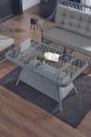 EVDEMO Icon Rattan Bahçe Balkon Oturma Takımı 2+1+1+Camlı Masa Gri