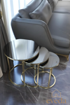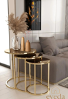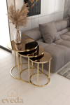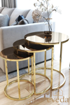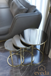 Eveda 3’lü Yuvarlak Zigon Sehpa Takımı | Bronz & Füme Ayna Seçenekli Üst Tabla | Gold Metal Ayaklı
