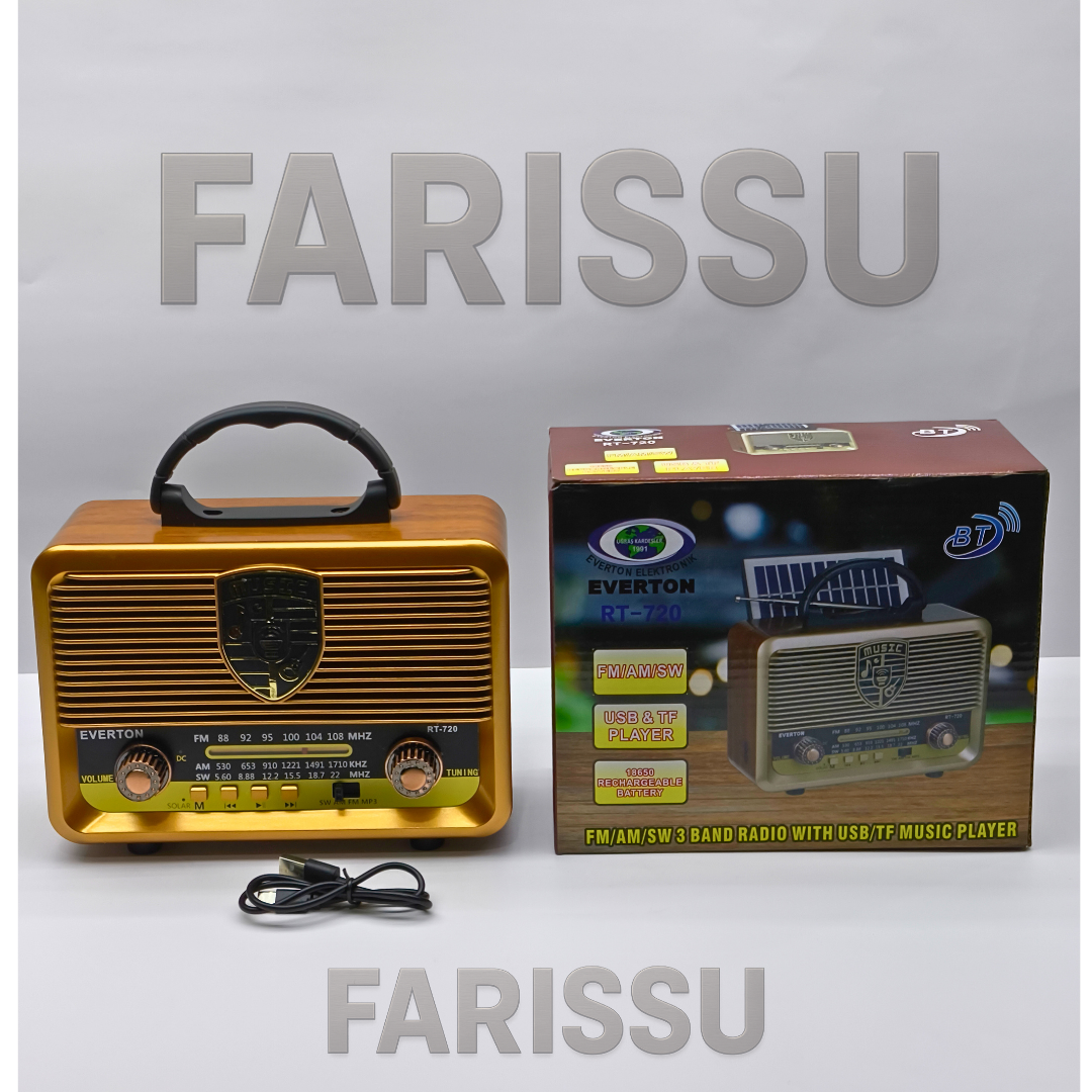 Farissu Everton RT-720 Güneş Enerjili (Solar) Nostaljik Bluetooth Radyo | FM/AM/SW, USB/TF Müzik Çalar