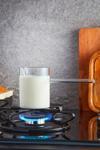 Modern tasarımıyla şık bir görünüm sergileyen bu cezve, mutfak dekorasyonunuza estetik bir dokunuş katar