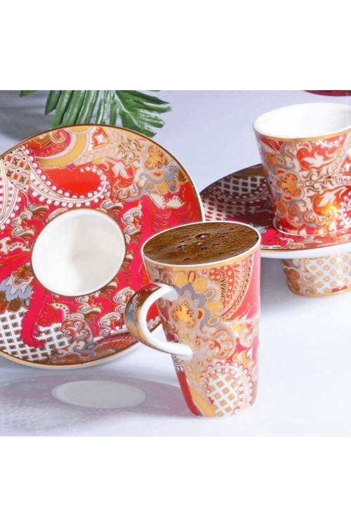 Porselen malzemesi sayesinde uzun ömürlü ve dayanıklı kullanım sunar; 6 kişilik geniş kapasitesi ile aile ve arkadaşlarınızla keyifli kahve sohbetleri için idealdir; Klasik tasarımıyla her türlü sofra düzenine kolayca uyum sağlar ve şık bir görünüm sunar;