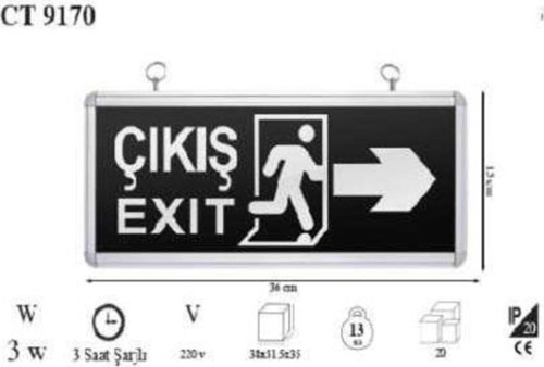 CATA EXIT ÇIKIŞ ARMATÜRÜ YÖNETMELİĞE UYGUN. ELEKTRİKLER GİTTİKDEN SONRA 3 SAAT YANMA SÜRESİ. 220V İLE ÇALIŞIR. IP 20 Bütün ürünlerimiz