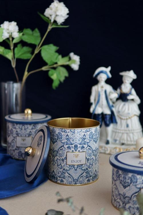 Azulejos Desenli Yuvarlak Metal Saklama Kabı, Erzak Saklama Kabı - Organizer 14 Cm X 15 Cm Er143-8E